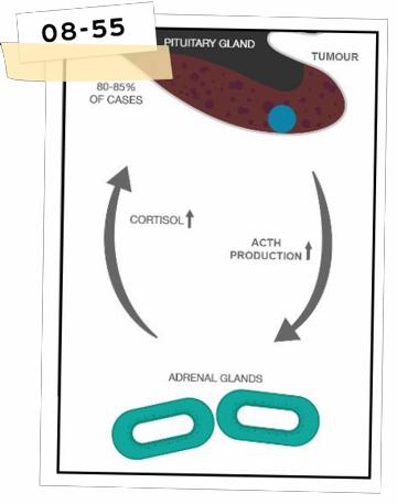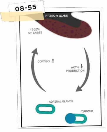 Celice tega tumorja proizvajajo prekomerne količine ACTH, kar vodi v prekomerno proizvodnjo kortizola.